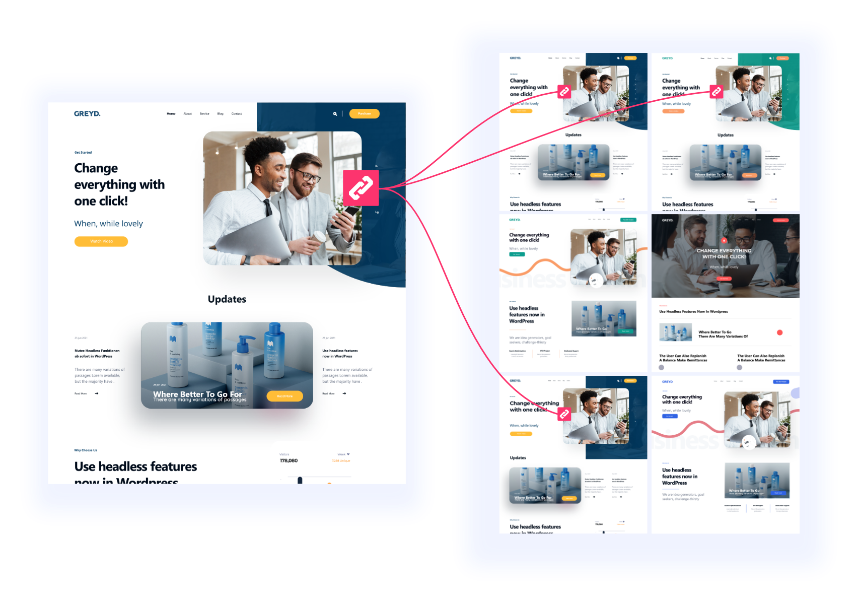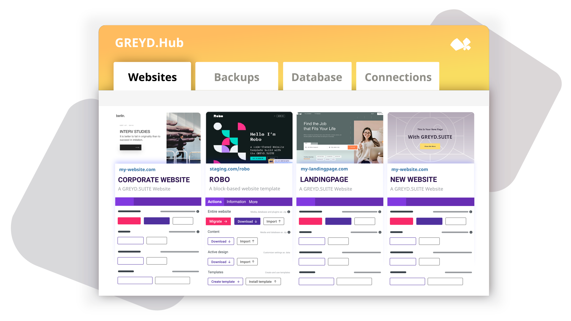 Greyd.Hub ist das WordPress-basierte Dashboard für die zentralisierte Verwaltung deines gesamten Web-Ökosystems. Du kannst Änderungen in Sekundenschnelle netzwerkweit und installationsübergreifend auf allen deinen Websites überwachen, duplizieren und ausspielen.